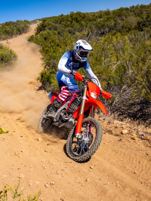 Having six speeds in the CRF450X’s transmission compared to an MX bike’s typical five gives you more choice, and makes this versatile bike even more versatile. You have a gear for everything from rock crawling to wide-open Baja blasts.