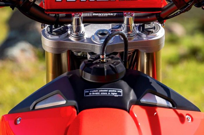 The CRF450X features our proven fuel-injection system. It’s part of the reason the CRF450X offers such excellent torque and spot-on metering and response, especially in the critical low-rpm range. It also automatically compensates for elevation and weather changes.